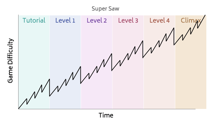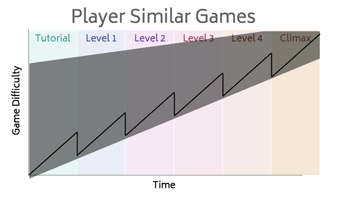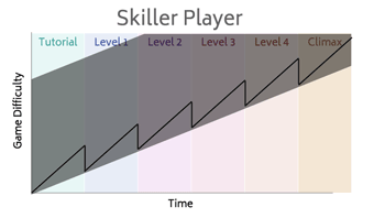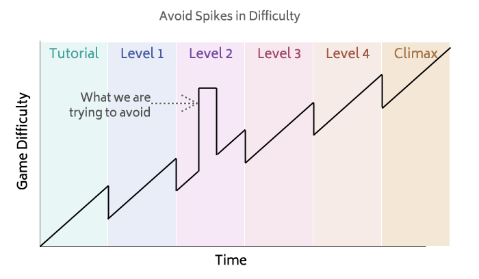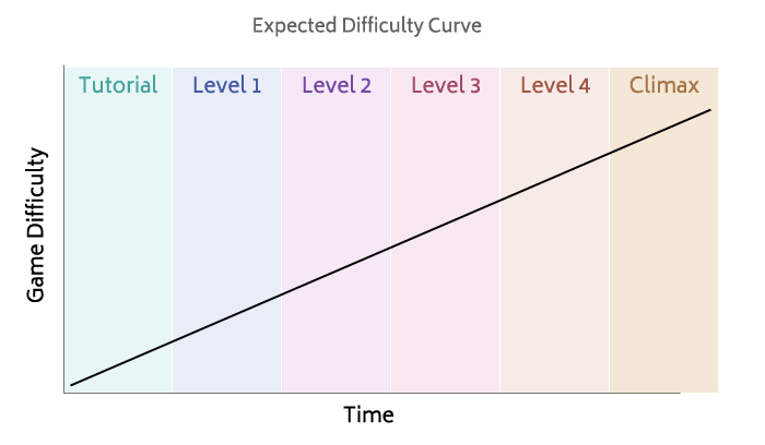 So briefly when I talk about a difficulty curve I’m talking about how games scale the difficulty for each level / puzzle. For example, you don’t want to introduce too many gameplay systems too quickly, but also you don’t want the first 10min of each level very slowly teaching the player something they already understood 5min ago.