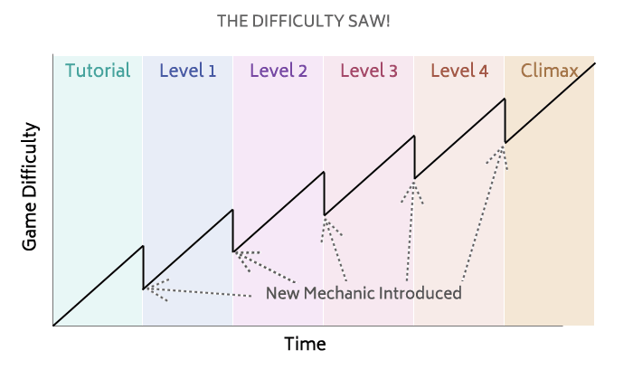 Now I’m not saying a new mechanic should be introduced every level, I’m not saying a level should start at 50% easier than the one before and be 150% harder by the end, I’m not saying a game should only be 4 levels long, I’m not saying that the increase each time should be the same (for example games that are easy to learn hard to master), I’m not saying mechanics should only be introduced at the start of a level, I’m not saying there should be only one new mechanic a level.
