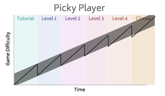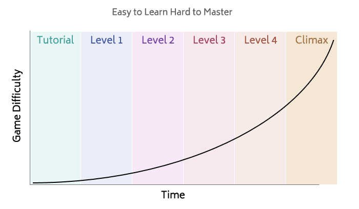 If at any point your graph is too steep / shallow this is when people get frustrated / bored. Now there is a problem with the fact that each person will have their own unique gradient (and each puzzle will have a different learning curve per person as well).
